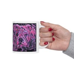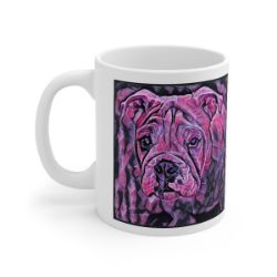 Keep cozy and warm with a nice cuppa, featuring the beloved Bulldog dog breed stylized in our Coloromo Violet Femmes art on a ceramic mug. Lead and BPA-free, these durable mugs are also microwave & dishwasher-safe. Made of white, resilient ceramic in an 11-ounce size, this is the perfect gift for coffee, tea, and hot chocolate lovers.
