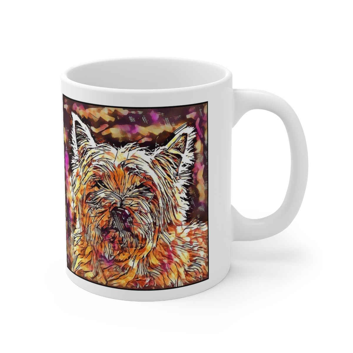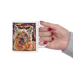 Keep cozy and warm with a nice cuppa, featuring the beloved Cairn Terrier dog breed stylized in our Coloromo Hipster art on a ceramic mug. Lead and BPA-free, these durable mugs are also microwave & dishwasher-safe. Made of white, resilient ceramic in an 11-ounce size, this is the perfect gift for coffee, tea, and hot chocolate lovers.