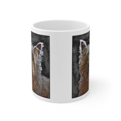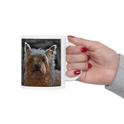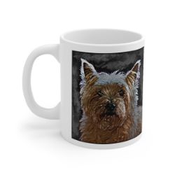 Keep cozy and warm with a nice cuppa, featuring the beloved Cairn Terrier dog breed stylized in our Coloromo Lord Lil Bit art on a ceramic mug. Lead and BPA-free, these durable mugs are also microwave & dishwasher-safe. Made of white, resilient ceramic in an 11-ounce size, this is the perfect gift for coffee, tea, and hot chocolate lovers.