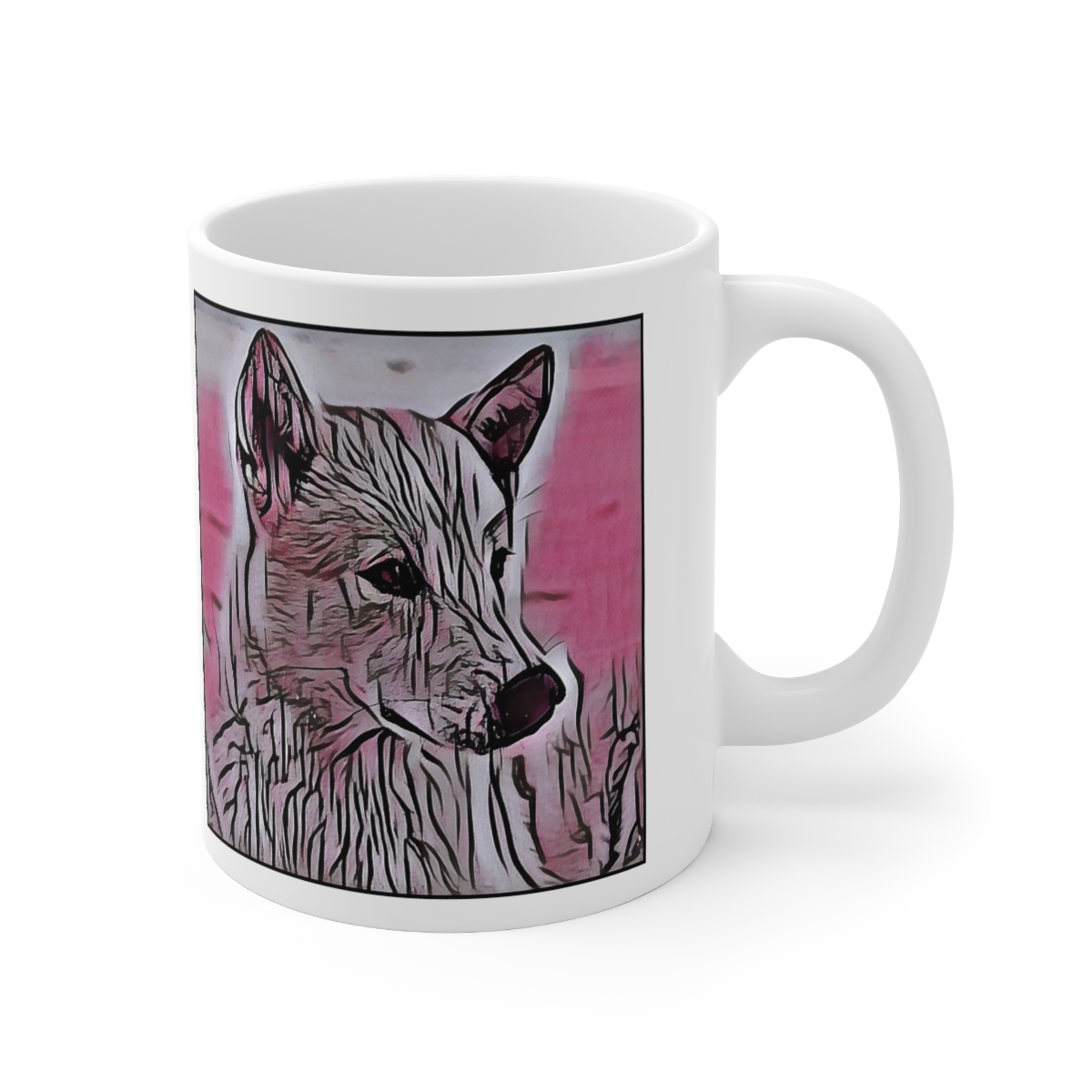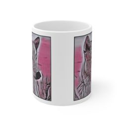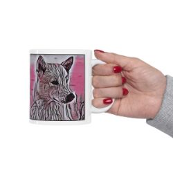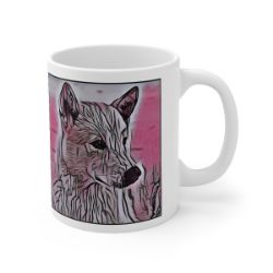 Keep cozy and warm with a nice cuppa, featuring the beloved Canaan dog breed stylized in our Coloromo Comic Pink art on a ceramic mug. Lead and BPA-free, these durable mugs are also microwave & dishwasher-safe. Made of white, resilient ceramic in an 11-ounce size, this is the perfect gift for coffee, tea, and hot chocolate lovers.
