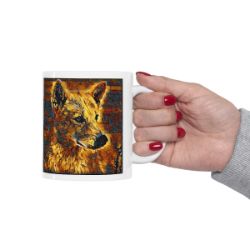 Keep cozy and warm with a nice cuppa, featuring the beloved Canaan dog breed stylized in our Coloromo Painterly art on a ceramic mug. Lead and BPA-free, these durable mugs are also microwave & dishwasher-safe. Made of white, resilient ceramic in an 11-ounce size, this is the perfect gift for coffee, tea, and hot chocolate lovers.