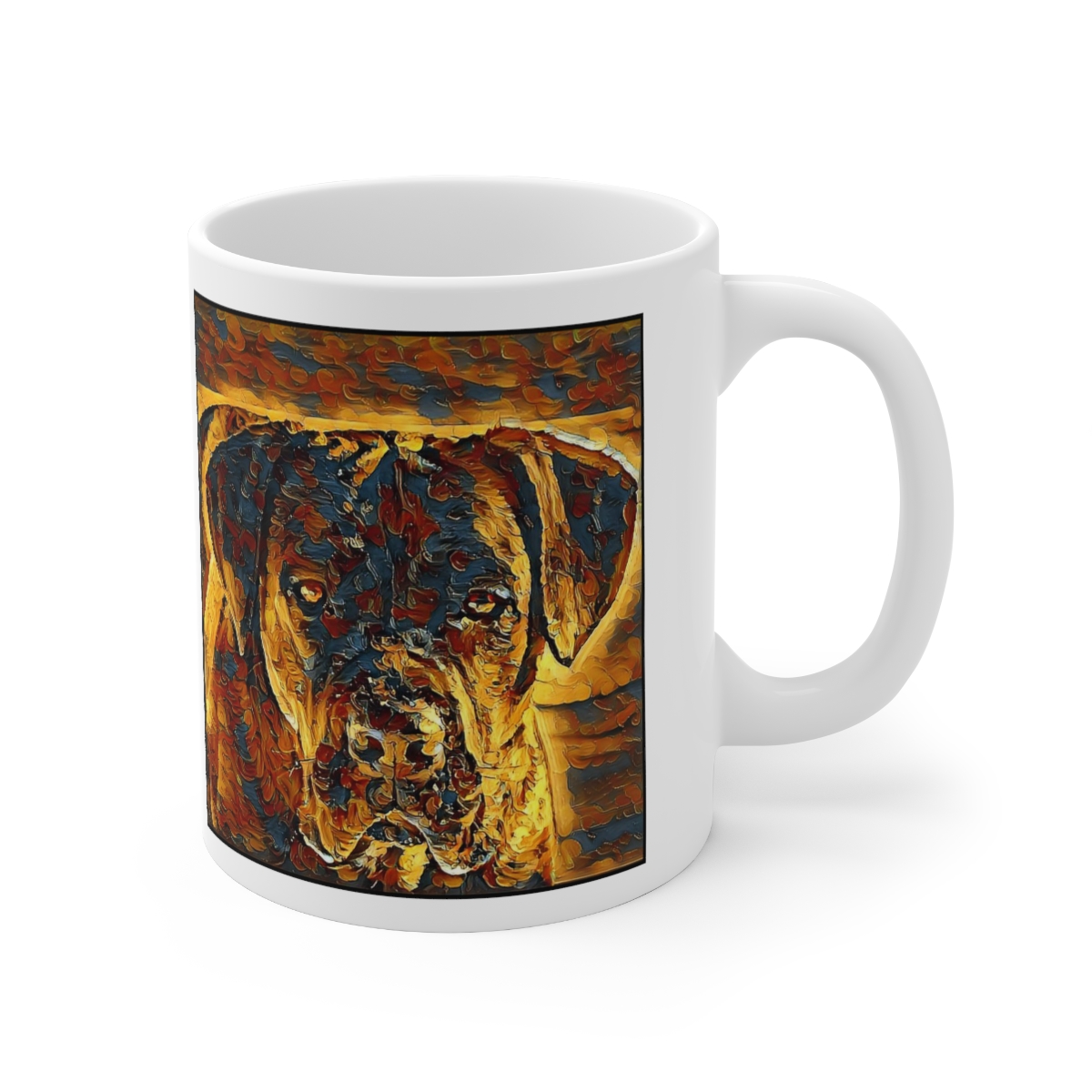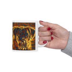 Keep cozy and warm with a nice cuppa, featuring the beloved Cane Corso dog breed stylized in our Coloromo Painterly art on a ceramic mug. Lead and BPA-free, these durable mugs are also microwave & dishwasher-safe. Made of white, resilient ceramic in an 11-ounce size, this is the perfect gift for coffee, tea, and hot chocolate lovers.