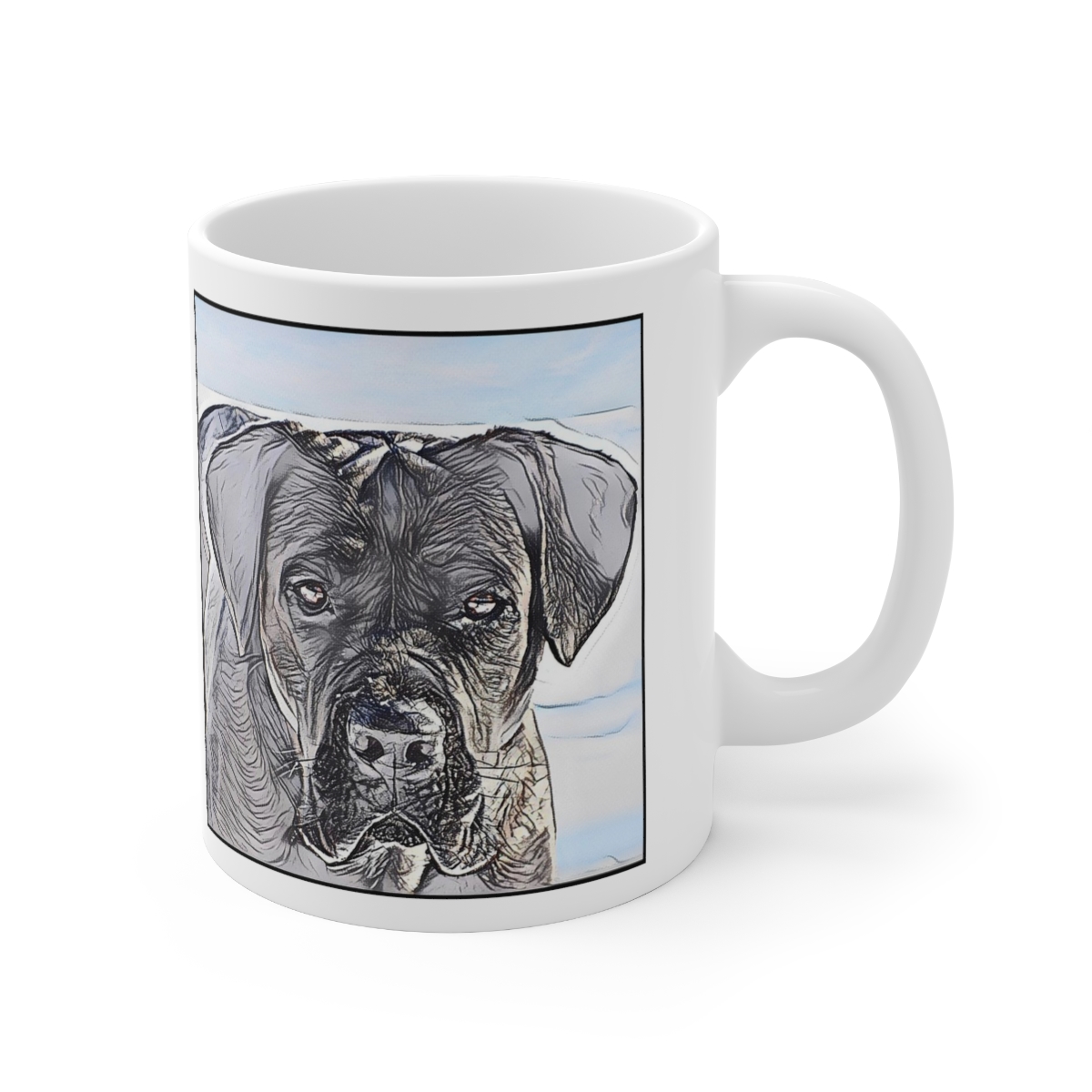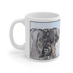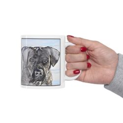 Keep cozy and warm with a nice cuppa, featuring the beloved Cane Corso dog breed stylized in our Coloromo Penciled In art on a ceramic mug. Lead and BPA-free, these durable mugs are also microwave & dishwasher-safe. Made of white, resilient ceramic in an 11-ounce size, this is the perfect gift for coffee, tea, and hot chocolate lovers.
