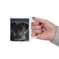 Keep cozy and warm with a nice cuppa, featuring the beloved Cane Corso dog breed stylized in our Coloromo Rock Candy art on a ceramic mug. Lead and BPA-free, these durable mugs are also microwave & dishwasher-safe. Made of white, resilient ceramic in an 11-ounce size, this is the perfect gift for coffee, tea, and hot chocolate lovers.