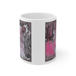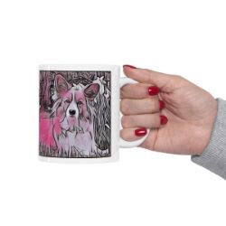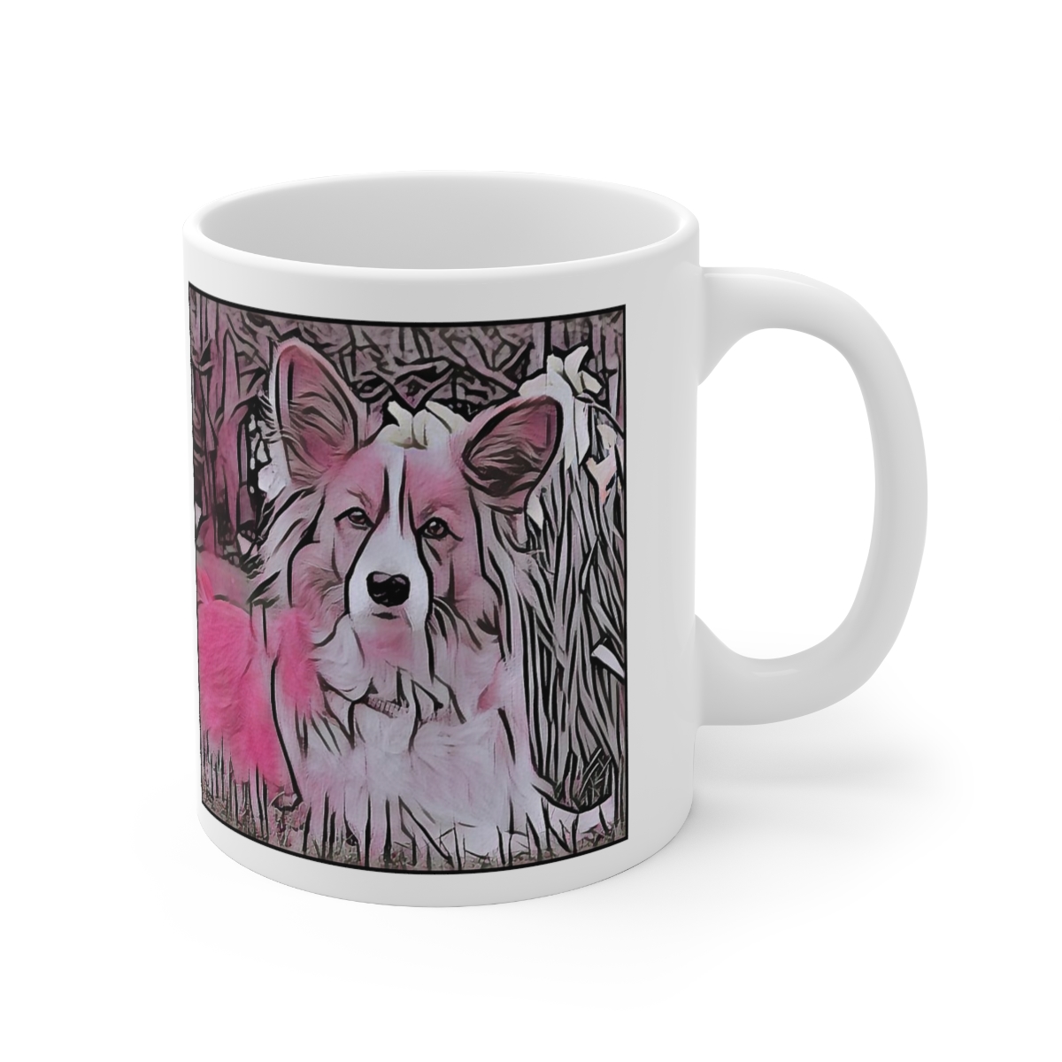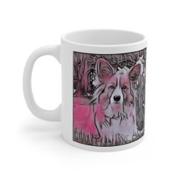 Keep cozy and warm with a nice cuppa, featuring the beloved Cardigan Welsh Corgi dog breed stylized in our Coloromo Comic Pink art on a ceramic mug. Lead and BPA-free, these durable mugs are also microwave & dishwasher-safe. Made of white, resilient ceramic in an 11-ounce size, this is the perfect gift for coffee, tea, and hot chocolate lovers.