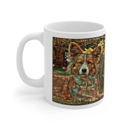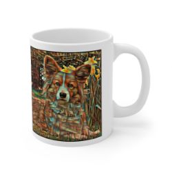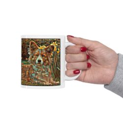 Keep cozy and warm with a nice cuppa, featuring the beloved Cardigan Welsh Corgi dog breed stylized in our Coloromo Cool Cubist art on a ceramic mug. Lead and BPA-free, these durable mugs are also microwave & dishwasher-safe. Made of white, resilient ceramic in an 11-ounce size, this is the perfect gift for coffee, tea, and hot chocolate lovers.