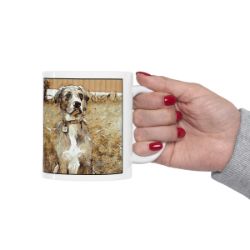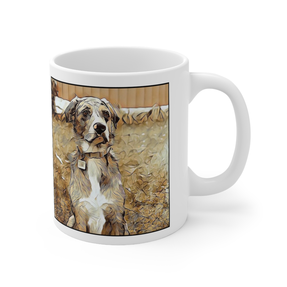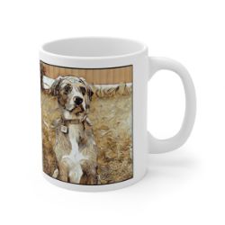Keep cozy and warm with a nice cuppa, featuring the beloved Catahoula Leopard Dog dog breed stylized in our Coloromo Hairy Styles art on a ceramic mug. Lead and BPA-free, these durable mugs are also microwave & dishwasher-safe. Made of white, resilient ceramic in an 11-ounce size, this is the perfect gift for coffee, tea, and hot chocolate lovers.