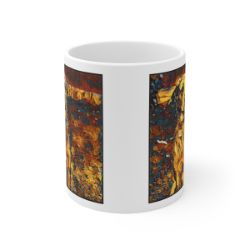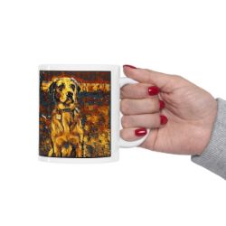 Keep cozy and warm with a nice cuppa, featuring the beloved Catahoula Leopard Dog dog breed stylized in our Coloromo Painterly art on a ceramic mug. Lead and BPA-free, these durable mugs are also microwave & dishwasher-safe. Made of white, resilient ceramic in an 11-ounce size, this is the perfect gift for coffee, tea, and hot chocolate lovers.