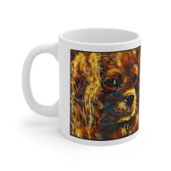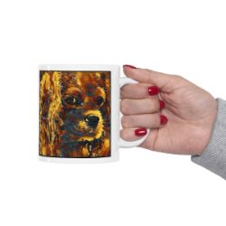 Keep cozy and warm with a nice cuppa, featuring the beloved Cavalier King Charles Spaniel dog breed stylized in our Coloromo Painterly art on a ceramic mug. Lead and BPA-free, these durable mugs are also microwave & dishwasher-safe. Made of white, resilient ceramic in an 11-ounce size, this is the perfect gift for coffee, tea, and hot chocolate lovers.