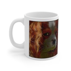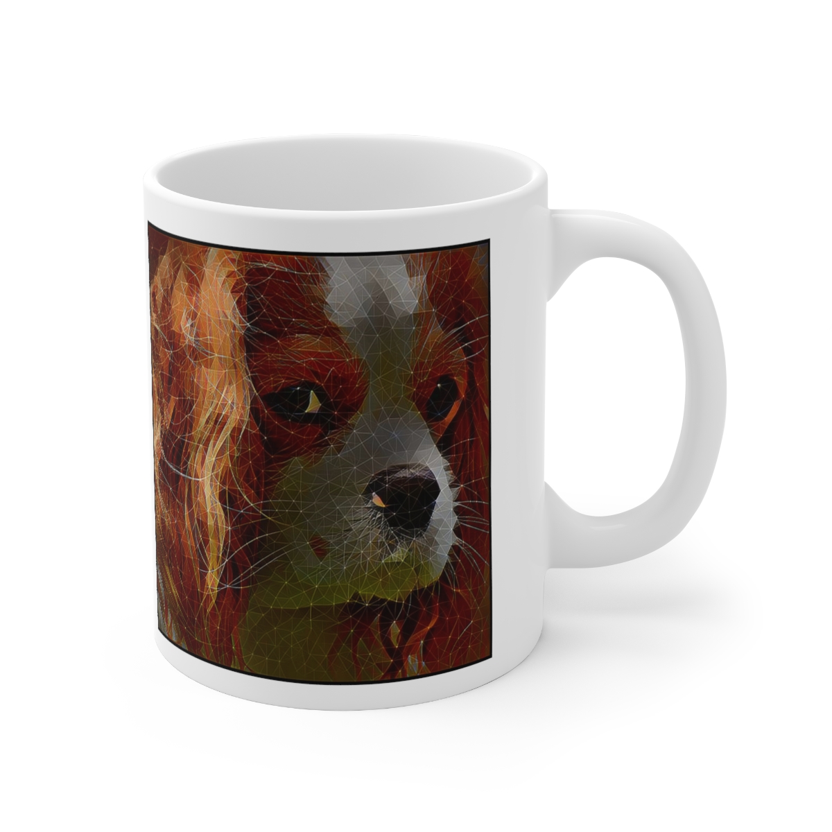 Keep cozy and warm with a nice cuppa, featuring the beloved Cavalier King Charles Spaniel dog breed stylized in our Coloromo Rock Candy art on a ceramic mug. Lead and BPA-free, these durable mugs are also microwave & dishwasher-safe. Made of white, resilient ceramic in an 11-ounce size, this is the perfect gift for coffee, tea, and hot chocolate lovers.