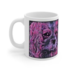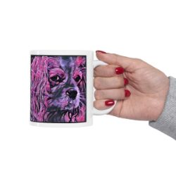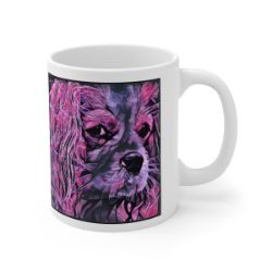 Keep cozy and warm with a nice cuppa, featuring the beloved Cavalier King Charles Spaniel dog breed stylized in our Coloromo Violet Femmes art on a ceramic mug. Lead and BPA-free, these durable mugs are also microwave & dishwasher-safe. Made of white, resilient ceramic in an 11-ounce size, this is the perfect gift for coffee, tea, and hot chocolate lovers.
