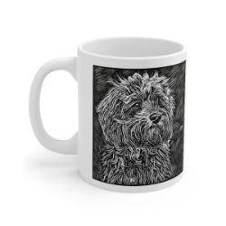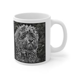 Keep cozy and warm with a nice cuppa, featuring the beloved Cavapoo dog breed stylized in our Coloromo Licorice Lines art on a ceramic mug. Lead and BPA-free, these durable mugs are also microwave & dishwasher-safe. Made of white, resilient ceramic in an 11-ounce size, this is the perfect gift for coffee, tea, and hot chocolate lovers.