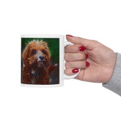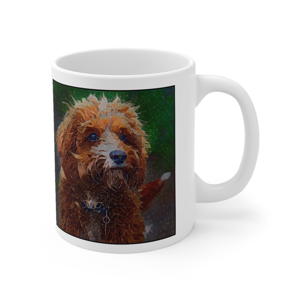 Keep cozy and warm with a nice cuppa, featuring the beloved Cavapoo dog breed stylized in our Coloromo Rock Candy art on a ceramic mug. Lead and BPA-free, these durable mugs are also microwave & dishwasher-safe. Made of white, resilient ceramic in an 11-ounce size, this is the perfect gift for coffee, tea, and hot chocolate lovers.