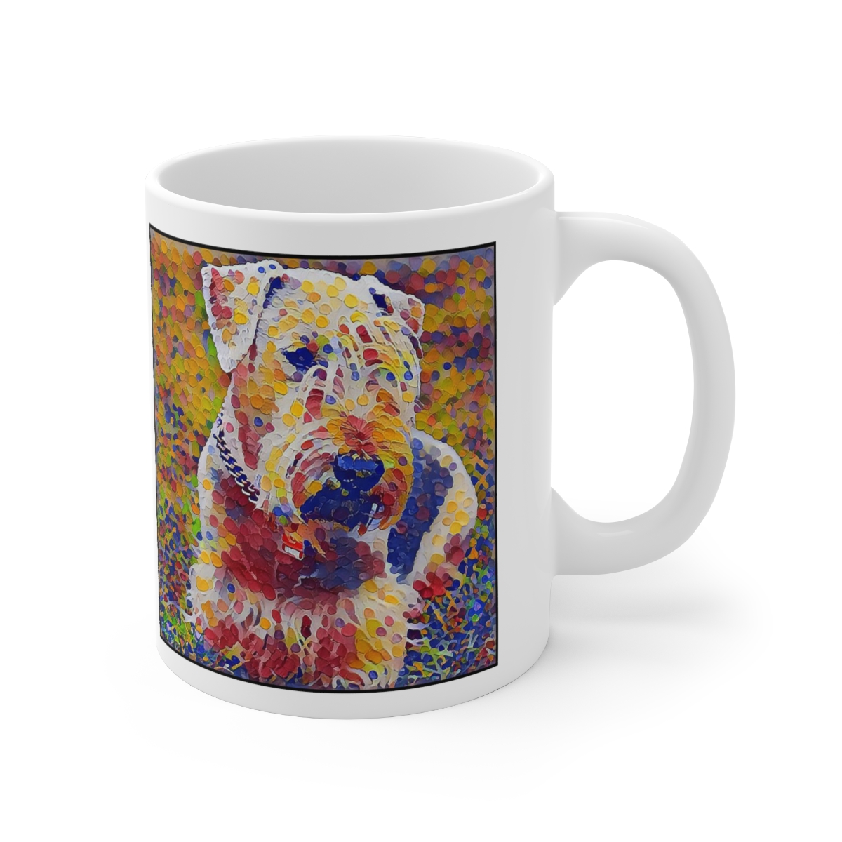 Keep cozy and warm with a nice cuppa, featuring the beloved Cesky Terrier dog breed stylized in our Coloromo Party Confetti art on a ceramic mug. Lead and BPA-free, these durable mugs are also microwave & dishwasher-safe. Made of white, resilient ceramic in an 11-ounce size, this is the perfect gift for coffee, tea, and hot chocolate lovers.
