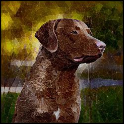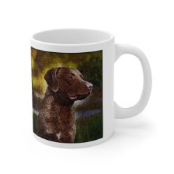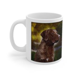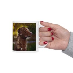 Keep cozy and warm with a nice cuppa, featuring the beloved Chesapeake Retriever dog breed stylized in our Coloromo Rock Candy art on a ceramic mug. Lead and BPA-free, these durable mugs are also microwave & dishwasher-safe. Made of white, resilient ceramic in an 11-ounce size, this is the perfect gift for coffee, tea, and hot chocolate lovers.