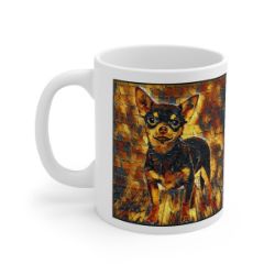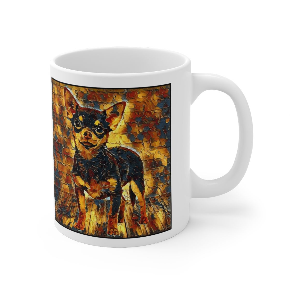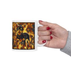 Keep cozy and warm with a nice cuppa, featuring the beloved Chihuahua Smooth Coat dog breed stylized in our Coloromo Painterly art on a ceramic mug. Lead and BPA-free, these durable mugs are also microwave & dishwasher-safe. Made of white, resilient ceramic in an 11-ounce size, this is the perfect gift for coffee, tea, and hot chocolate lovers.
