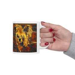 Keep cozy and warm with a nice cuppa, featuring the beloved Chinese Crested dog breed stylized in our Coloromo Painterly art on a ceramic mug. Lead and BPA-free, these durable mugs are also microwave & dishwasher-safe. Made of white, resilient ceramic in an 11-ounce size, this is the perfect gift for coffee, tea, and hot chocolate lovers.
