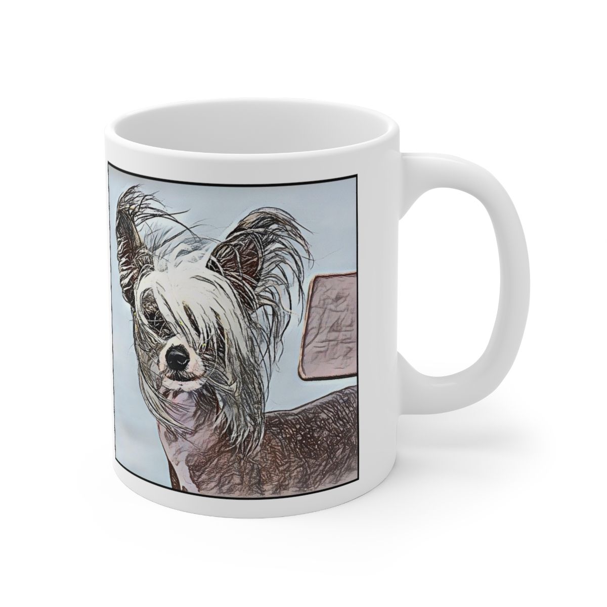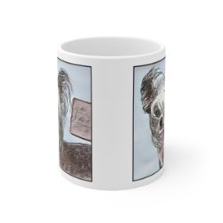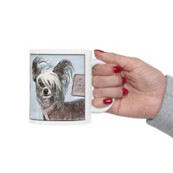 Keep cozy and warm with a nice cuppa, featuring the beloved Chinese Crested dog breed stylized in our Coloromo Penciled In art on a ceramic mug. Lead and BPA-free, these durable mugs are also microwave & dishwasher-safe. Made of white, resilient ceramic in an 11-ounce size, this is the perfect gift for coffee, tea, and hot chocolate lovers.