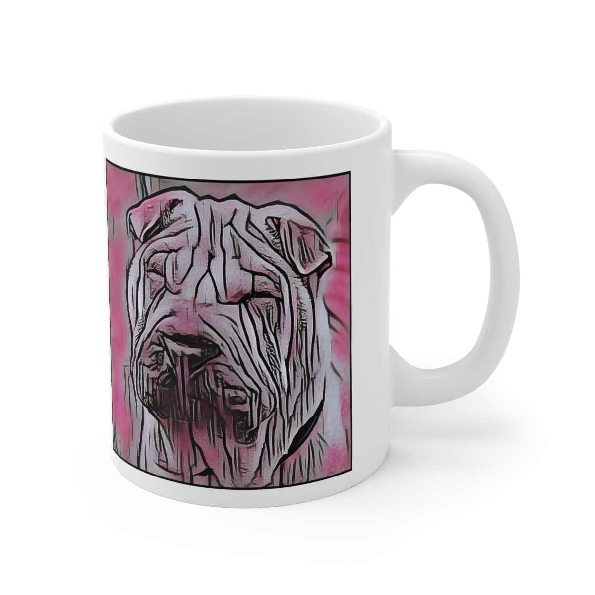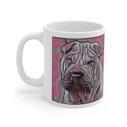 Keep cozy and warm with a nice cuppa, featuring the beloved Chinese Shar Pei dog breed stylized in our Coloromo Comic Pink art on a ceramic mug. Lead and BPA-free, these durable mugs are also microwave & dishwasher-safe. Made of white, resilient ceramic in an 11-ounce size, this is the perfect gift for coffee, tea, and hot chocolate lovers.