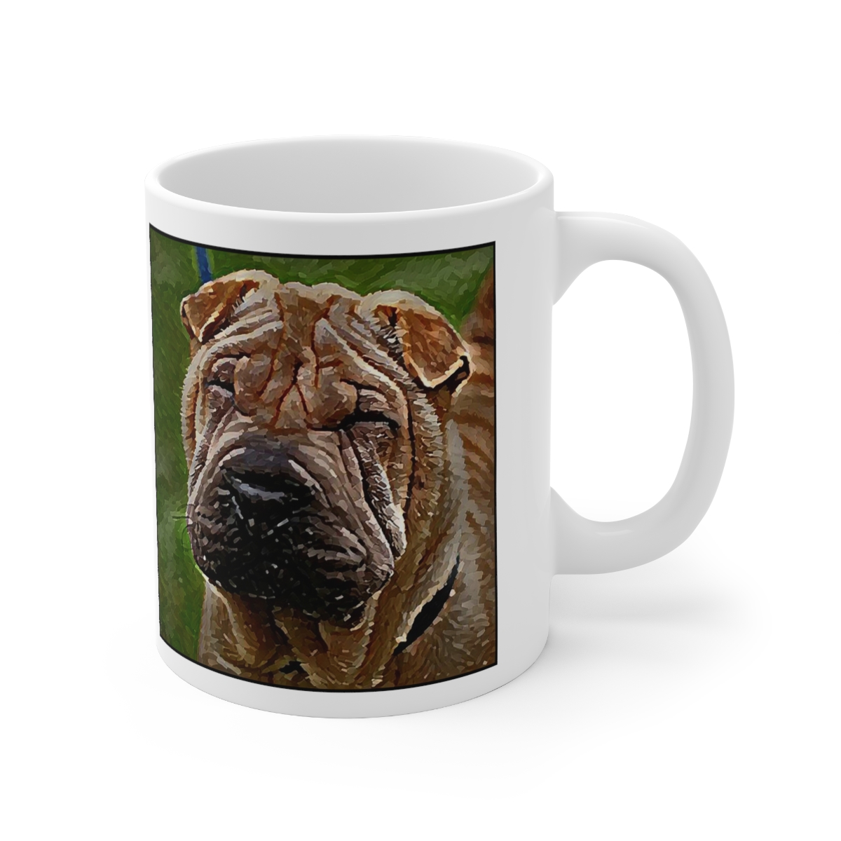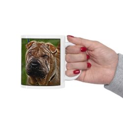 Keep cozy and warm with a nice cuppa, featuring the beloved Chinese Shar Pei dog breed stylized in our Coloromo Lord Lil Bit art on a ceramic mug. Lead and BPA-free, these durable mugs are also microwave & dishwasher-safe. Made of white, resilient ceramic in an 11-ounce size, this is the perfect gift for coffee, tea, and hot chocolate lovers.