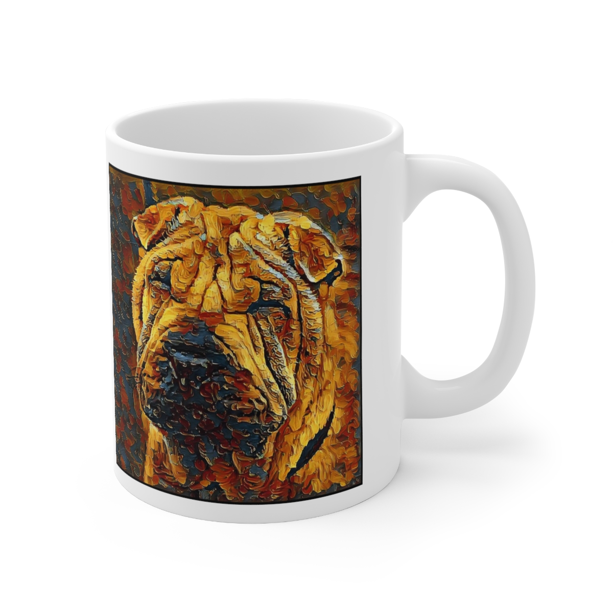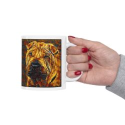 Keep cozy and warm with a nice cuppa, featuring the beloved Chinese Shar Pei dog breed stylized in our Coloromo Painterly art on a ceramic mug. Lead and BPA-free, these durable mugs are also microwave & dishwasher-safe. Made of white, resilient ceramic in an 11-ounce size, this is the perfect gift for coffee, tea, and hot chocolate lovers.