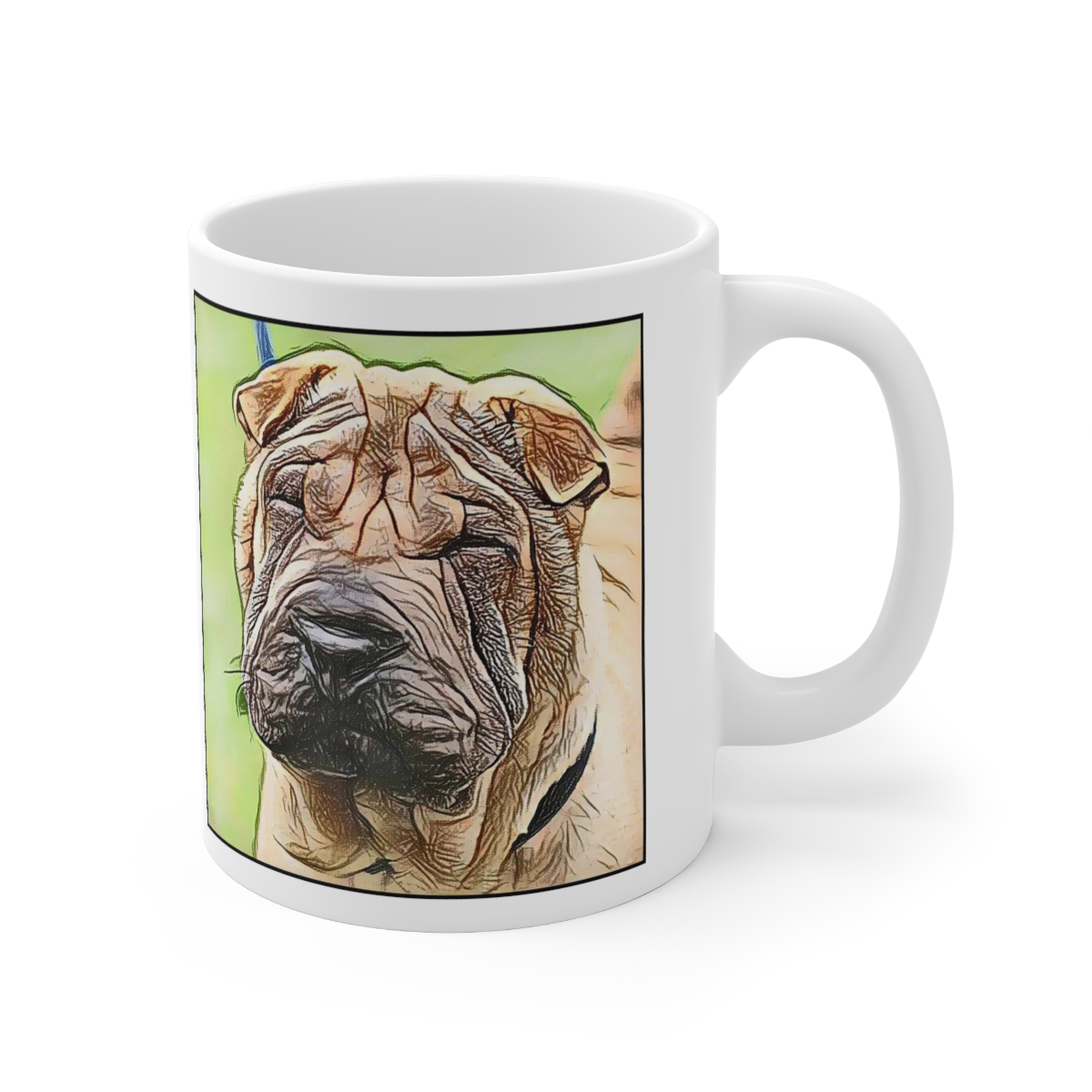 Keep cozy and warm with a nice cuppa, featuring the beloved Chinese Shar Pei dog breed stylized in our Coloromo Penciled In art on a ceramic mug. Lead and BPA-free, these durable mugs are also microwave & dishwasher-safe. Made of white, resilient ceramic in an 11-ounce size, this is the perfect gift for coffee, tea, and hot chocolate lovers.