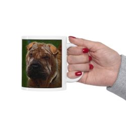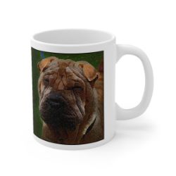 Keep cozy and warm with a nice cuppa, featuring the beloved Chinese Shar Pei dog breed stylized in our Coloromo Rock Candy art on a ceramic mug. Lead and BPA-free, these durable mugs are also microwave & dishwasher-safe. Made of white, resilient ceramic in an 11-ounce size, this is the perfect gift for coffee, tea, and hot chocolate lovers.