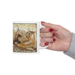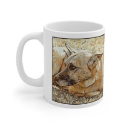 Keep cozy and warm with a nice cuppa, featuring the beloved Chinook dog breed stylized in our Coloromo Hairy Styles art on a ceramic mug. Lead and BPA-free, these durable mugs are also microwave & dishwasher-safe. Made of white, resilient ceramic in an 11-ounce size, this is the perfect gift for coffee, tea, and hot chocolate lovers.