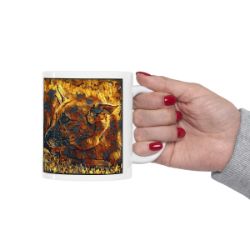 Keep cozy and warm with a nice cuppa, featuring the beloved Chinook dog breed stylized in our Coloromo Painterly art on a ceramic mug. Lead and BPA-free, these durable mugs are also microwave & dishwasher-safe. Made of white, resilient ceramic in an 11-ounce size, this is the perfect gift for coffee, tea, and hot chocolate lovers.