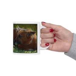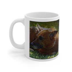 Keep cozy and warm with a nice cuppa, featuring the beloved Chinook dog breed stylized in our Coloromo Rock Candy art on a ceramic mug. Lead and BPA-free, these durable mugs are also microwave & dishwasher-safe. Made of white, resilient ceramic in an 11-ounce size, this is the perfect gift for coffee, tea, and hot chocolate lovers.