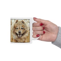 Keep cozy and warm with a nice cuppa, featuring the beloved Chow Chow dog breed stylized in our Coloromo Hairy Styles art on a ceramic mug. Lead and BPA-free, these durable mugs are also microwave & dishwasher-safe. Made of white, resilient ceramic in an 11-ounce size, this is the perfect gift for coffee, tea, and hot chocolate lovers.