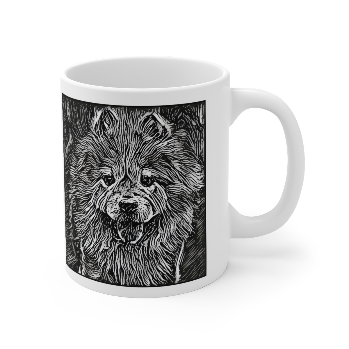 Keep cozy and warm with a nice cuppa, featuring the beloved Chow Chow dog breed stylized in our Coloromo Licorice Lines art on a ceramic mug. Lead and BPA-free, these durable mugs are also microwave & dishwasher-safe. Made of white, resilient ceramic in an 11-ounce size, this is the perfect gift for coffee, tea, and hot chocolate lovers.