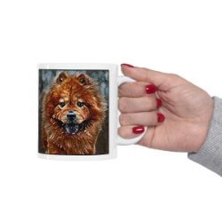 Keep cozy and warm with a nice cuppa, featuring the beloved Chow Chow dog breed stylized in our Coloromo Lord Lil Bit art on a ceramic mug. Lead and BPA-free, these durable mugs are also microwave & dishwasher-safe. Made of white, resilient ceramic in an 11-ounce size, this is the perfect gift for coffee, tea, and hot chocolate lovers.