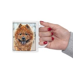 Keep cozy and warm with a nice cuppa, featuring the beloved Chow Chow dog breed stylized in our Coloromo Penciled In art on a ceramic mug. Lead and BPA-free, these durable mugs are also microwave & dishwasher-safe. Made of white, resilient ceramic in an 11-ounce size, this is the perfect gift for coffee, tea, and hot chocolate lovers.