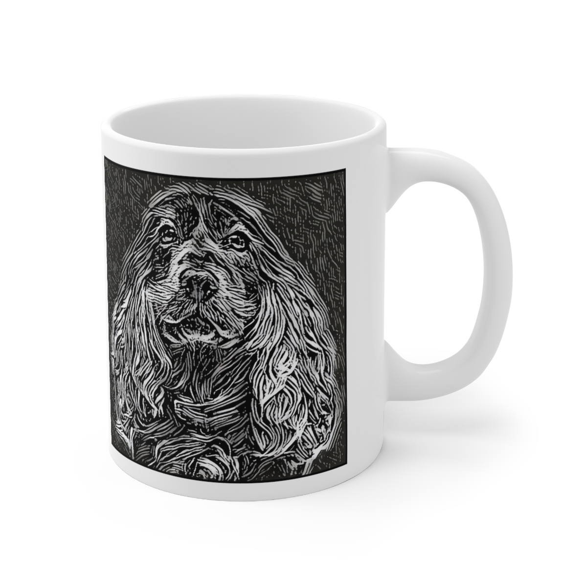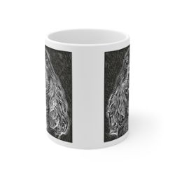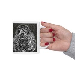 Keep cozy and warm with a nice cuppa, featuring the beloved Cocker Spaniel dog breed stylized in our Coloromo Licorice Lines art on a ceramic mug. Lead and BPA-free, these durable mugs are also microwave & dishwasher-safe. Made of white, resilient ceramic in an 11-ounce size, this is the perfect gift for coffee, tea, and hot chocolate lovers.