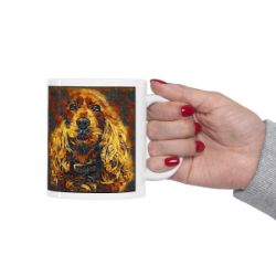 Keep cozy and warm with a nice cuppa, featuring the beloved Cocker Spaniel dog breed stylized in our Coloromo Painterly art on a ceramic mug. Lead and BPA-free, these durable mugs are also microwave & dishwasher-safe. Made of white, resilient ceramic in an 11-ounce size, this is the perfect gift for coffee, tea, and hot chocolate lovers.