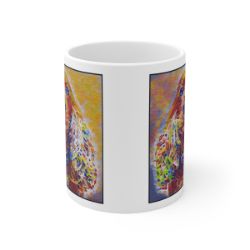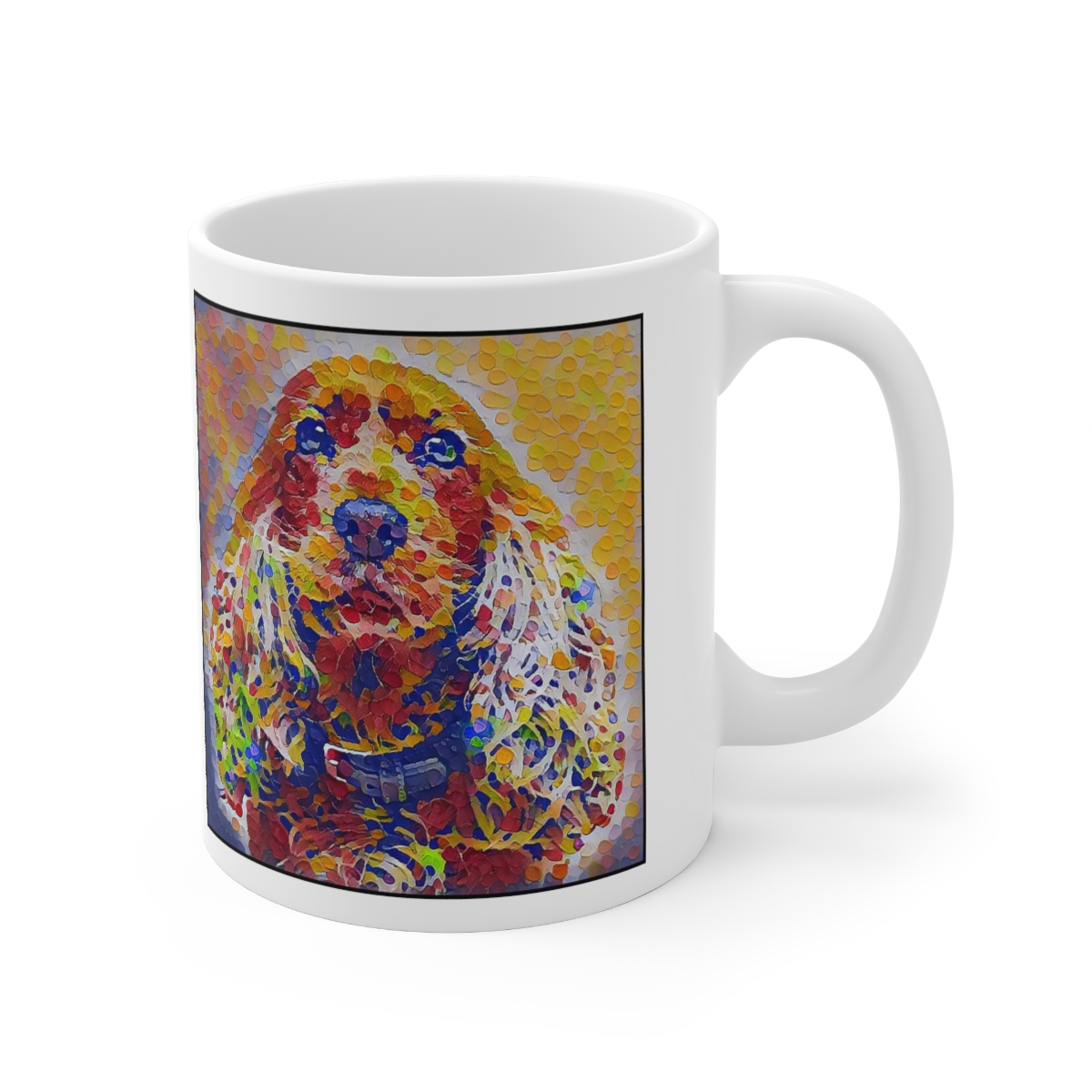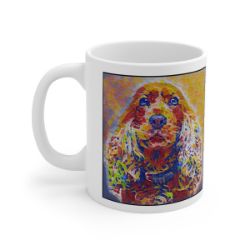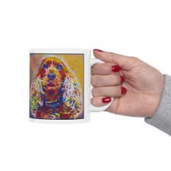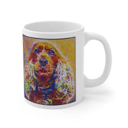 Keep cozy and warm with a nice cuppa, featuring the beloved Cocker Spaniel dog breed stylized in our Coloromo Party Confetti art on a ceramic mug. Lead and BPA-free, these durable mugs are also microwave & dishwasher-safe. Made of white, resilient ceramic in an 11-ounce size, this is the perfect gift for coffee, tea, and hot chocolate lovers.