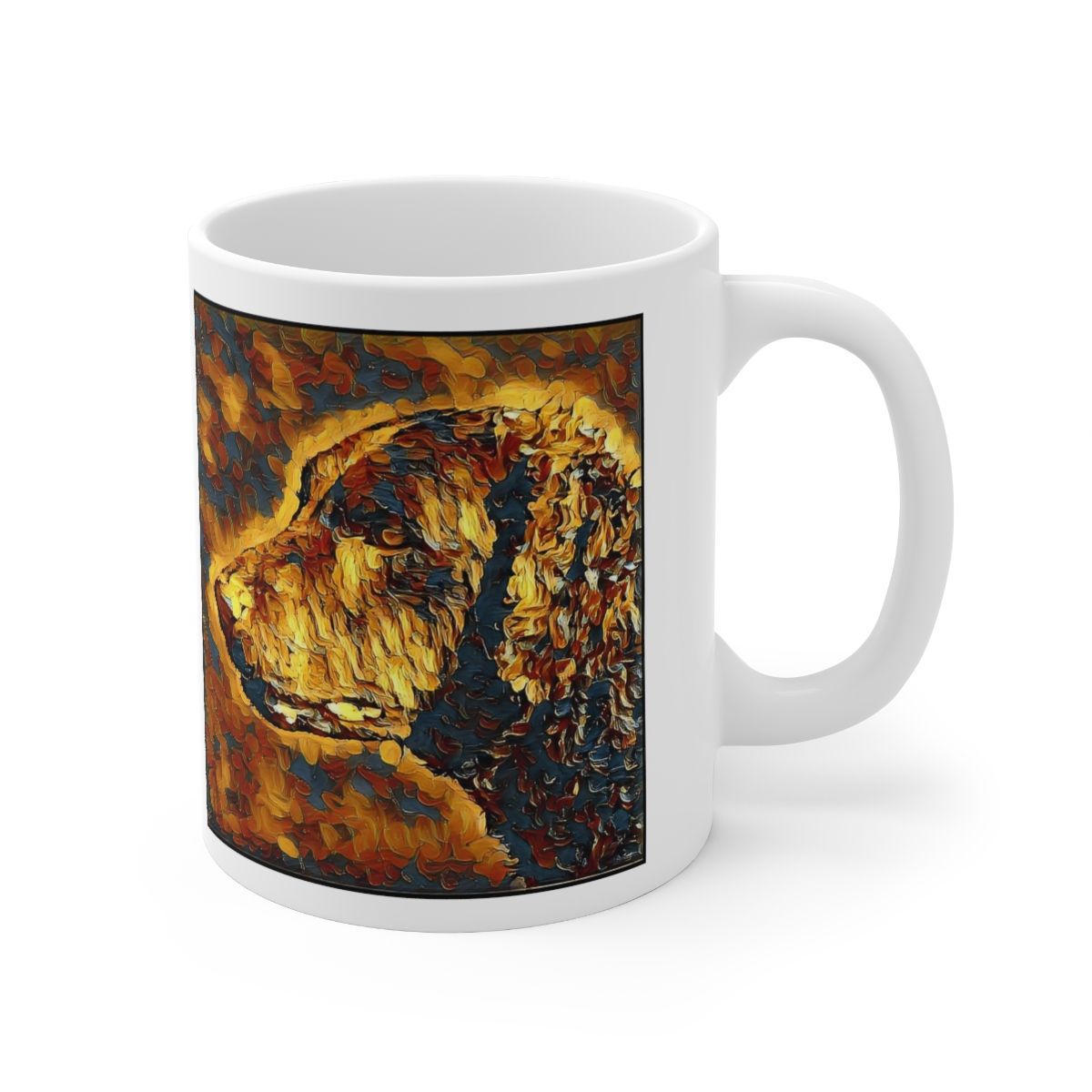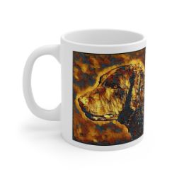 Keep cozy and warm with a nice cuppa, featuring the beloved Curly Coated Retriever dog breed stylized in our Coloromo Painterly art on a ceramic mug. Lead and BPA-free, these durable mugs are also microwave & dishwasher-safe. Made of white, resilient ceramic in an 11-ounce size, this is the perfect gift for coffee, tea, and hot chocolate lovers.