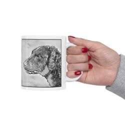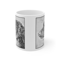 Keep cozy and warm with a nice cuppa, featuring the beloved Curly Coated Retriever dog breed stylized in our Coloromo Penciled In art on a ceramic mug. Lead and BPA-free, these durable mugs are also microwave & dishwasher-safe. Made of white, resilient ceramic in an 11-ounce size, this is the perfect gift for coffee, tea, and hot chocolate lovers.