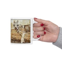 Keep cozy and warm with a nice cuppa, featuring the beloved Czechoslovakian Vilocak dog breed stylized in our Coloromo Hairy Styles art on a ceramic mug. Lead and BPA-free, these durable mugs are also microwave & dishwasher-safe. Made of white, resilient ceramic in an 11-ounce size, this is the perfect gift for coffee, tea, and hot chocolate lovers.