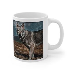 Keep cozy and warm with a nice cuppa, featuring the beloved Czechoslovakian Vilocak dog breed stylized in our Coloromo Lord Lil Bit art on a ceramic mug. Lead and BPA-free, these durable mugs are also microwave & dishwasher-safe. Made of white, resilient ceramic in an 11-ounce size, this is the perfect gift for coffee, tea, and hot chocolate lovers.