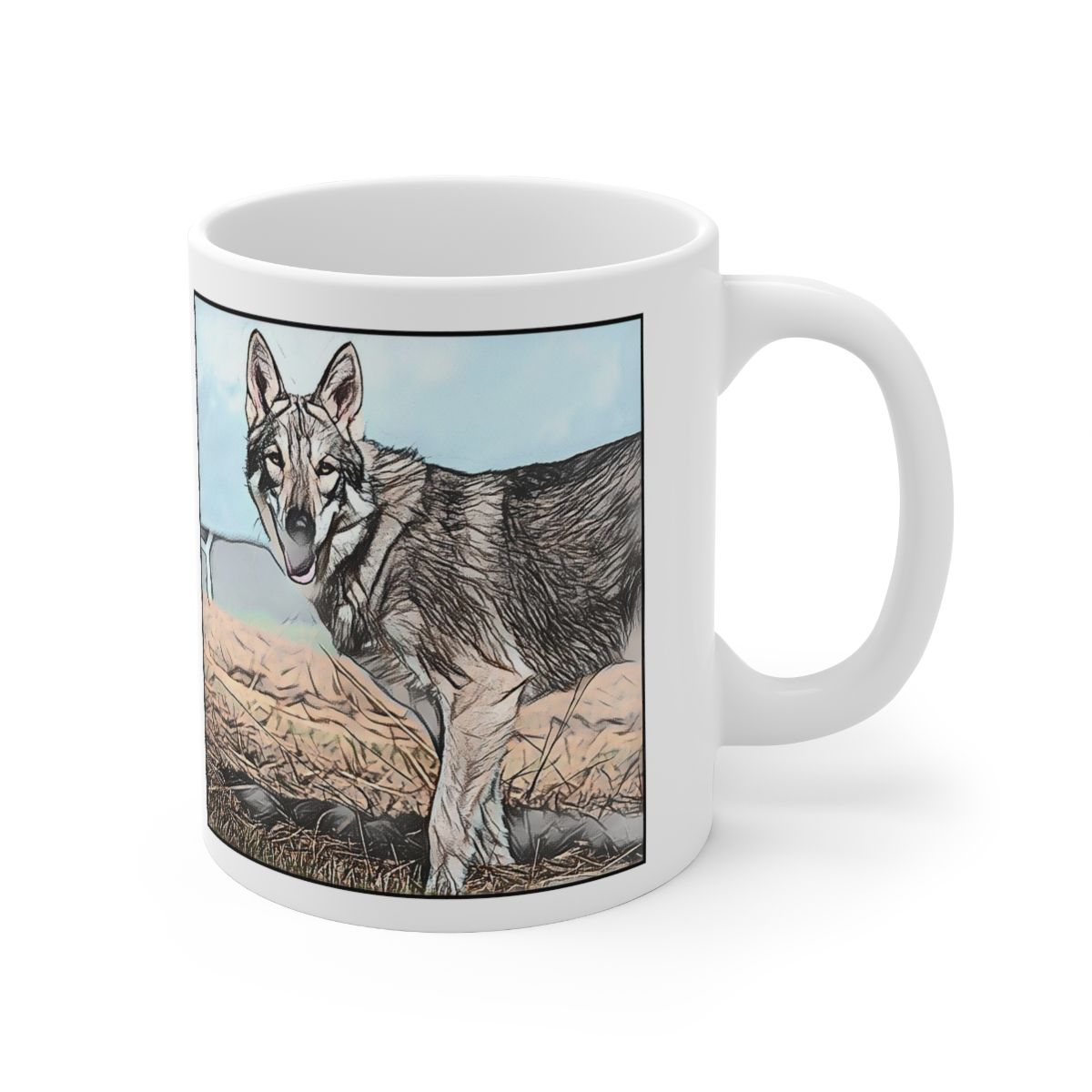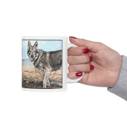 Keep cozy and warm with a nice cuppa, featuring the beloved Czechoslovakian Vilocak dog breed stylized in our Coloromo Penciled In art on a ceramic mug. Lead and BPA-free, these durable mugs are also microwave & dishwasher-safe. Made of white, resilient ceramic in an 11-ounce size, this is the perfect gift for coffee, tea, and hot chocolate lovers.