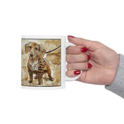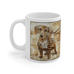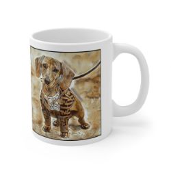 Keep cozy and warm with a nice cuppa, featuring the beloved Dachshund dog breed stylized in our Coloromo Hairy Styles art on a ceramic mug. Lead and BPA-free, these durable mugs are also microwave & dishwasher-safe. Made of white, resilient ceramic in an 11-ounce size, this is the perfect gift for coffee, tea, and hot chocolate lovers.
