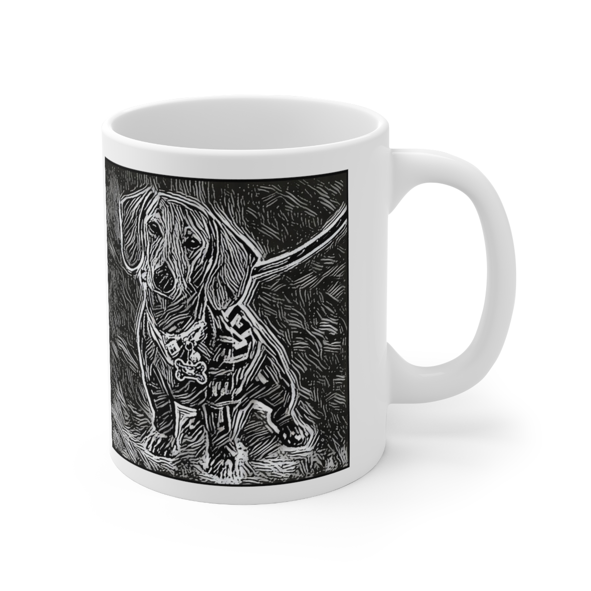 Keep cozy and warm with a nice cuppa, featuring the beloved Dachshund dog breed stylized in our Coloromo Licorice Lines art on a ceramic mug. Lead and BPA-free, these durable mugs are also microwave & dishwasher-safe. Made of white, resilient ceramic in an 11-ounce size, this is the perfect gift for coffee, tea, and hot chocolate lovers.