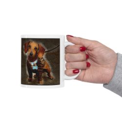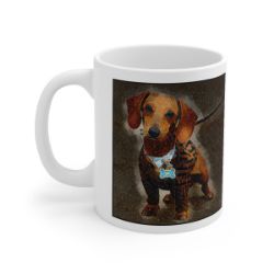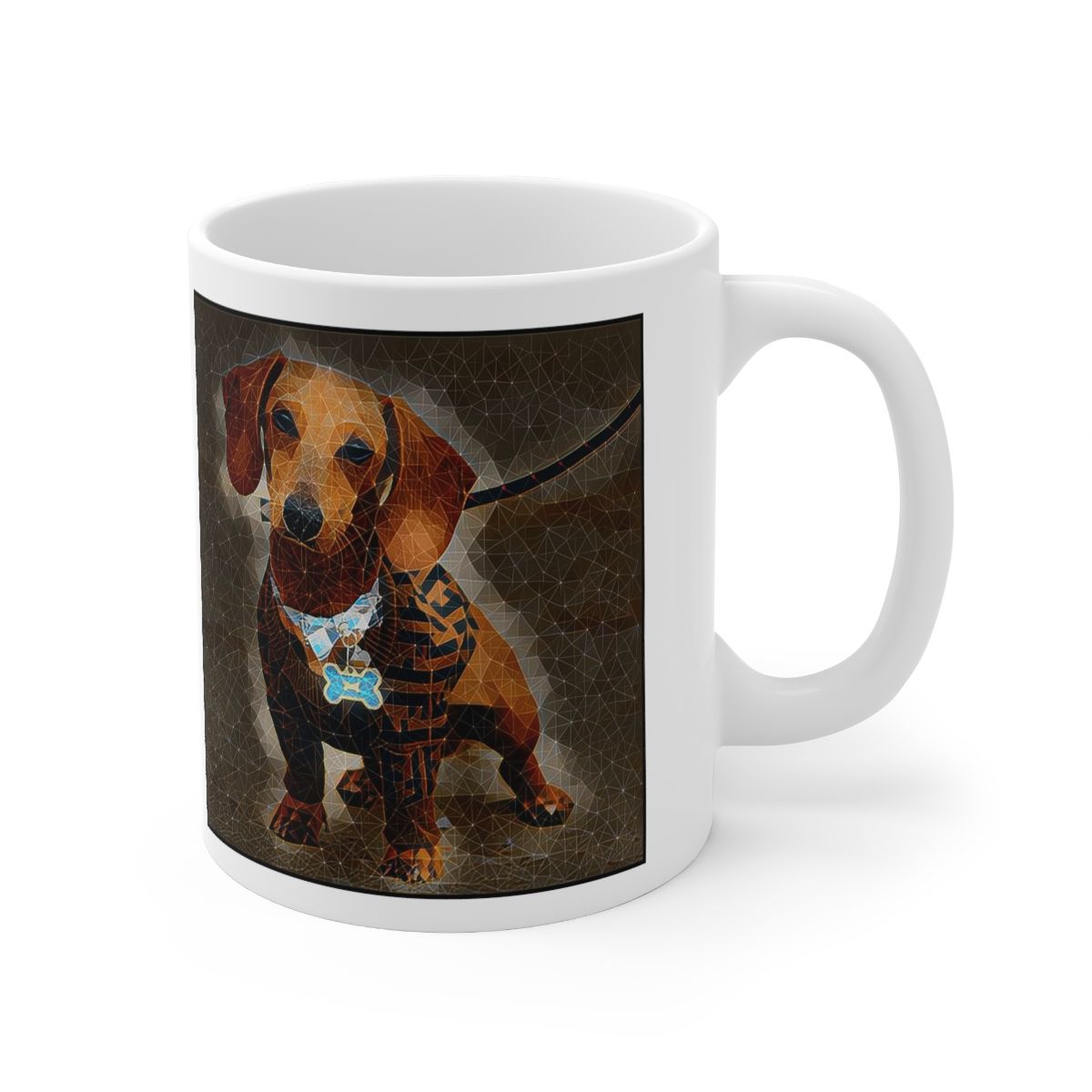 Keep cozy and warm with a nice cuppa, featuring the beloved Dachshund dog breed stylized in our Coloromo Rock Candy art on a ceramic mug. Lead and BPA-free, these durable mugs are also microwave & dishwasher-safe. Made of white, resilient ceramic in an 11-ounce size, this is the perfect gift for coffee, tea, and hot chocolate lovers.
