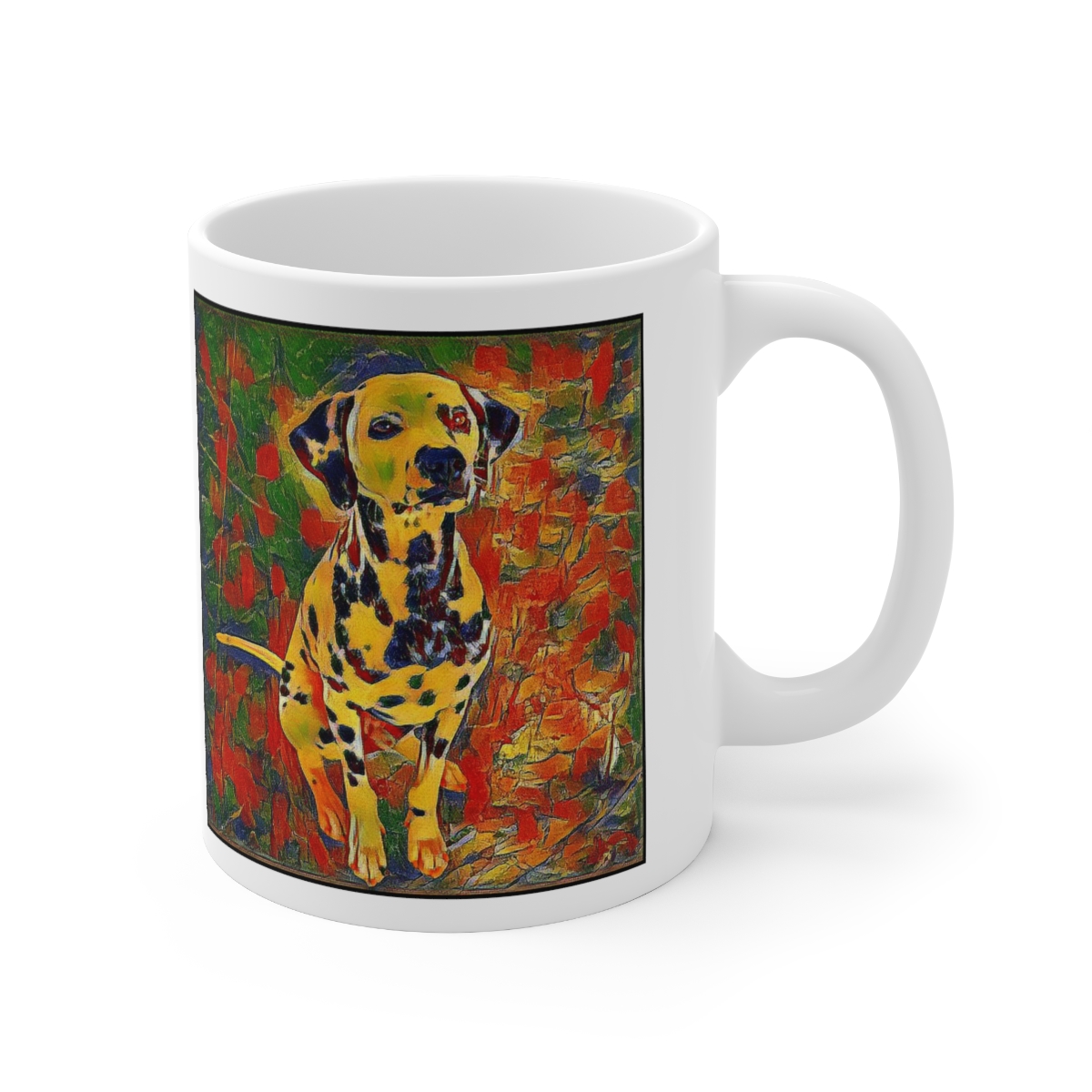 Keep cozy and warm with a nice cuppa, featuring the beloved Dalmation dog breed stylized in our Coloromo Garden Veggie art on a ceramic mug. Lead and BPA-free, these durable mugs are also microwave & dishwasher-safe. Made of white, resilient ceramic in an 11-ounce size, this is the perfect gift for coffee, tea, and hot chocolate lovers.