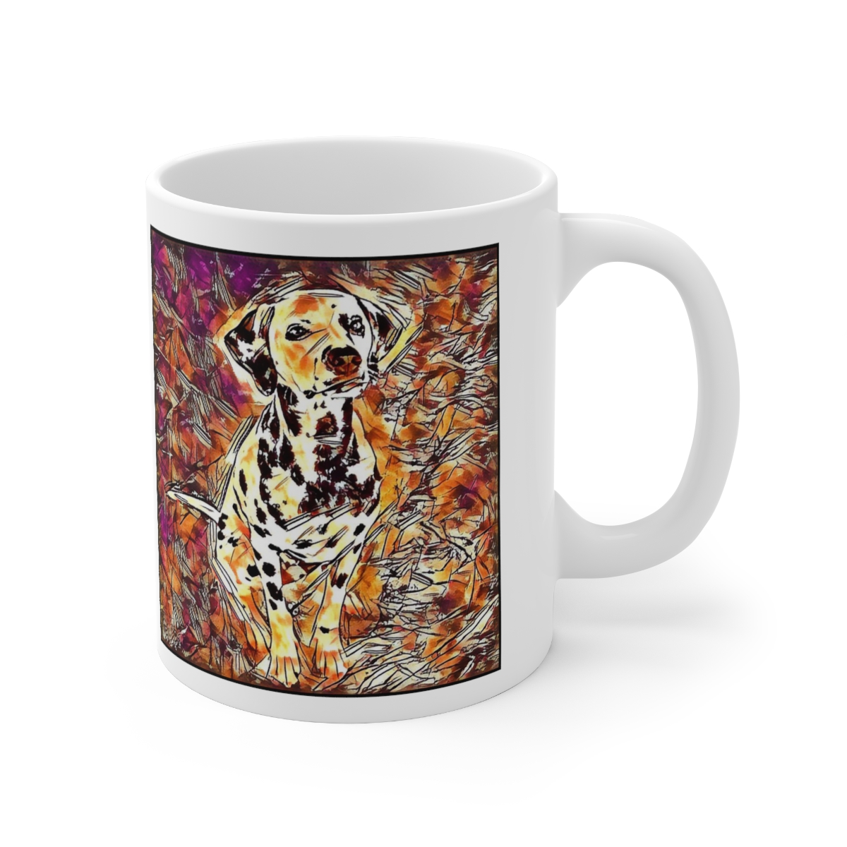 Keep cozy and warm with a nice cuppa, featuring the beloved Dalmation dog breed stylized in our Coloromo Hipster art on a ceramic mug. Lead and BPA-free, these durable mugs are also microwave & dishwasher-safe. Made of white, resilient ceramic in an 11-ounce size, this is the perfect gift for coffee, tea, and hot chocolate lovers.