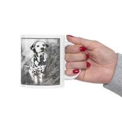 Keep cozy and warm with a nice cuppa, featuring the beloved Dalmation dog breed stylized in our Coloromo Penciled In art on a ceramic mug. Lead and BPA-free, these durable mugs are also microwave & dishwasher-safe. Made of white, resilient ceramic in an 11-ounce size, this is the perfect gift for coffee, tea, and hot chocolate lovers.