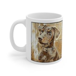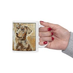 Keep cozy and warm with a nice cuppa, featuring the beloved Doberman dog breed stylized in our Coloromo Hairy Styles art on a ceramic mug. Lead and BPA-free, these durable mugs are also microwave & dishwasher-safe. Made of white, resilient ceramic in an 11-ounce size, this is the perfect gift for coffee, tea, and hot chocolate lovers.