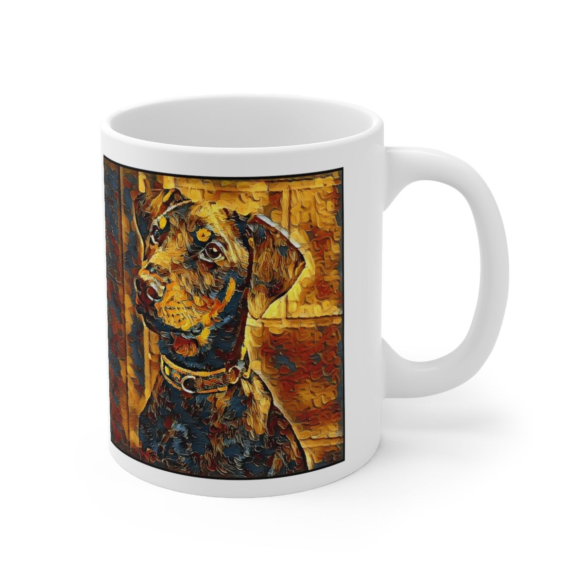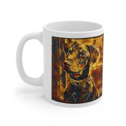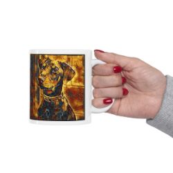 Keep cozy and warm with a nice cuppa, featuring the beloved Doberman dog breed stylized in our Coloromo Painterly art on a ceramic mug. Lead and BPA-free, these durable mugs are also microwave & dishwasher-safe. Made of white, resilient ceramic in an 11-ounce size, this is the perfect gift for coffee, tea, and hot chocolate lovers.